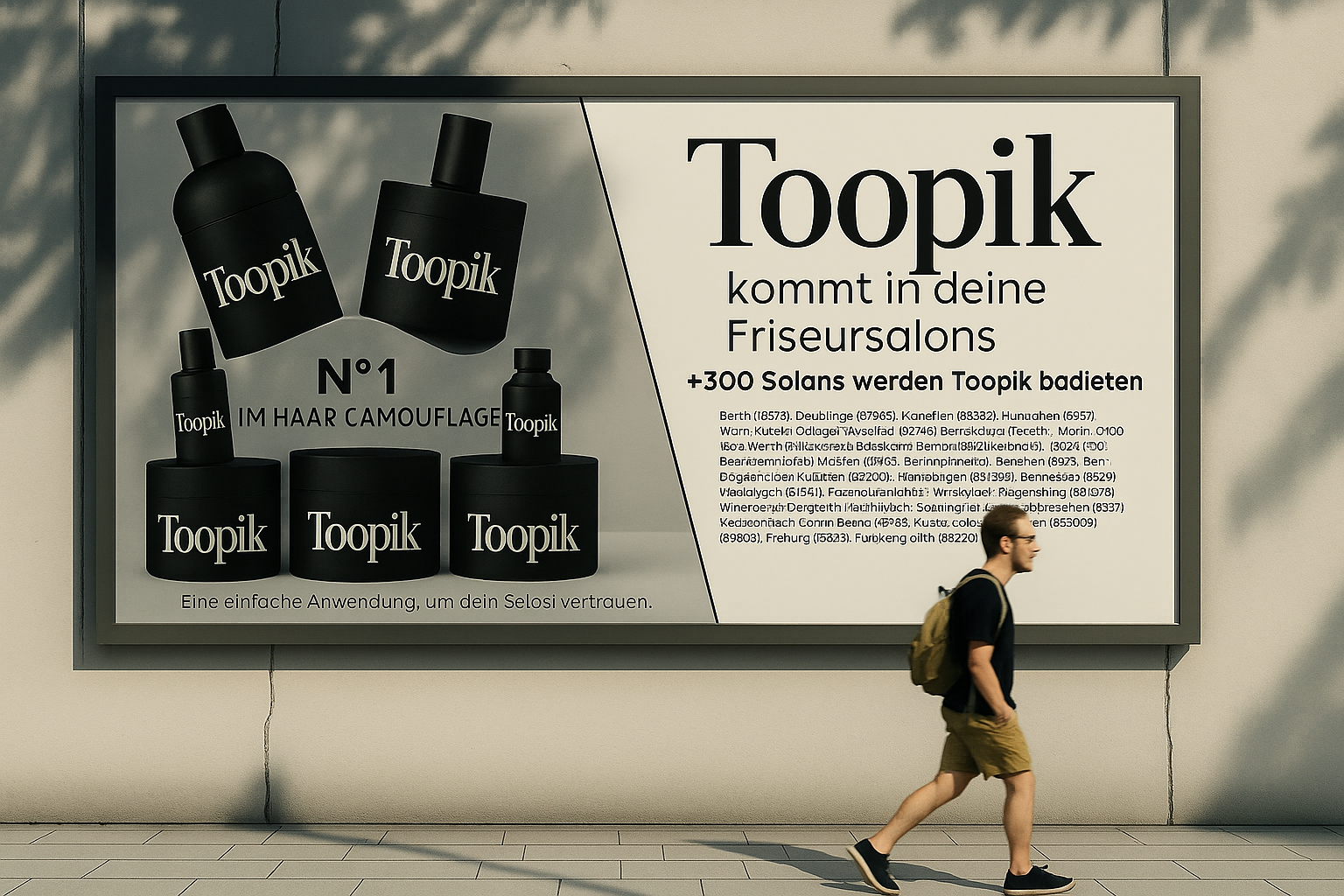 "Ich habe es bei meinen Kunden getestet. Alle waren zufrieden. Schluss mit Komplexen – Haarausfall ist für sie jetzt nur noch eine Erinnerung."